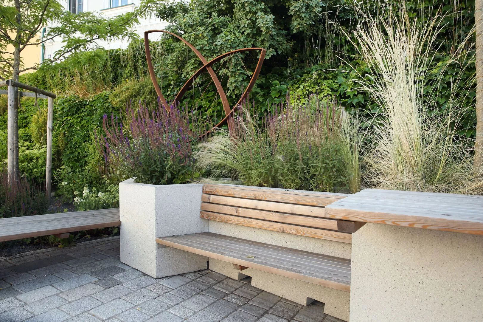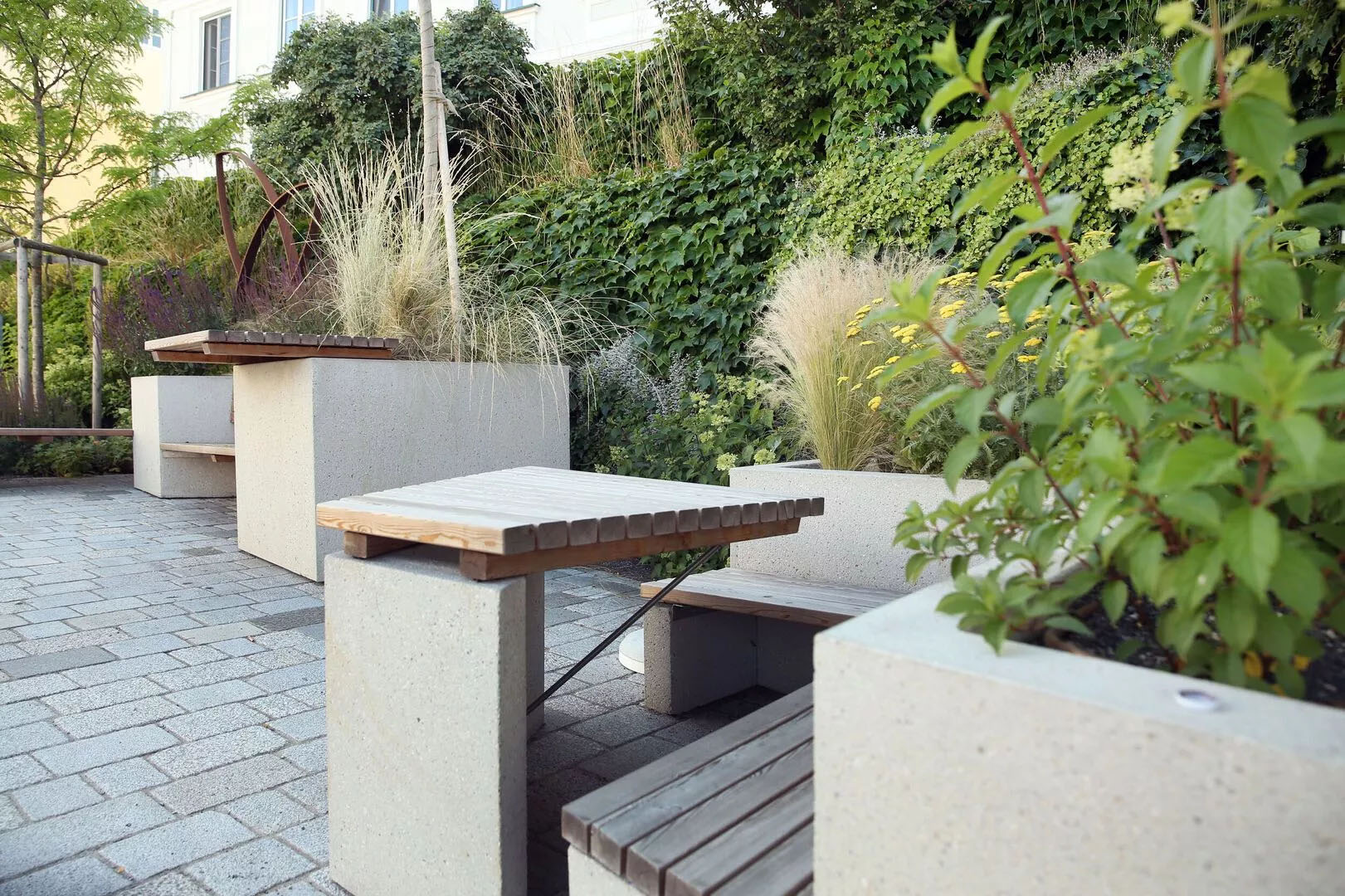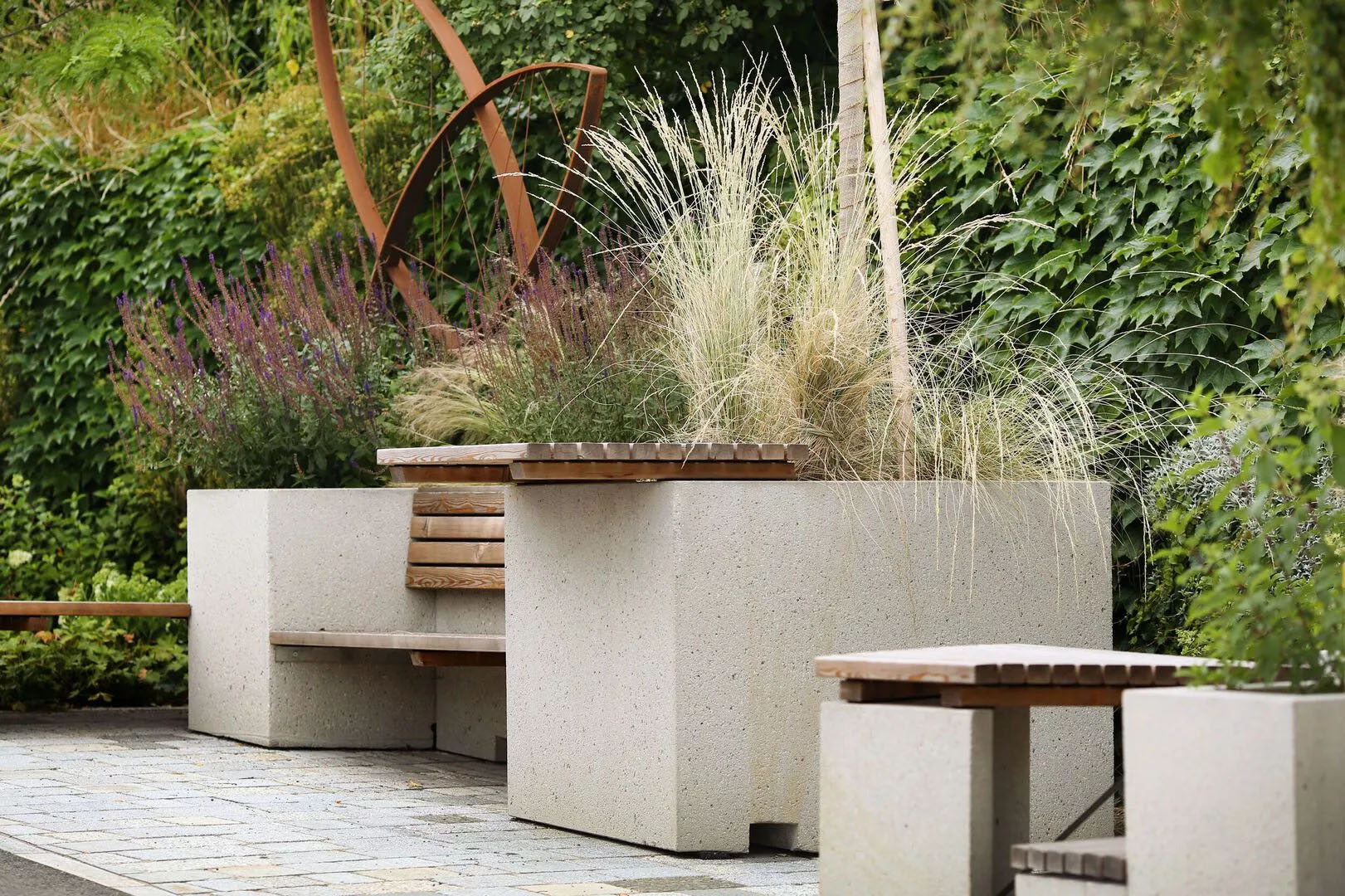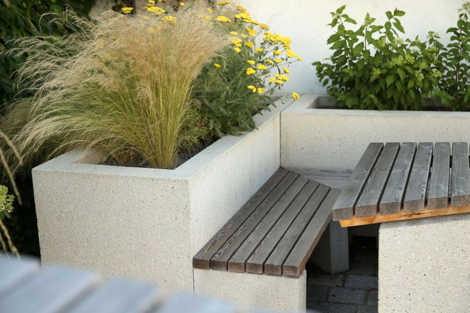 Im Zuge der Neugestaltung des Straßenraums in Aschbach-Markt wurden Pflanzbeete angelegt und werden Möblierungselemente, angelehnt an die Gestaltung des Freibades, an wichtigen Punkten im Ort situiert.