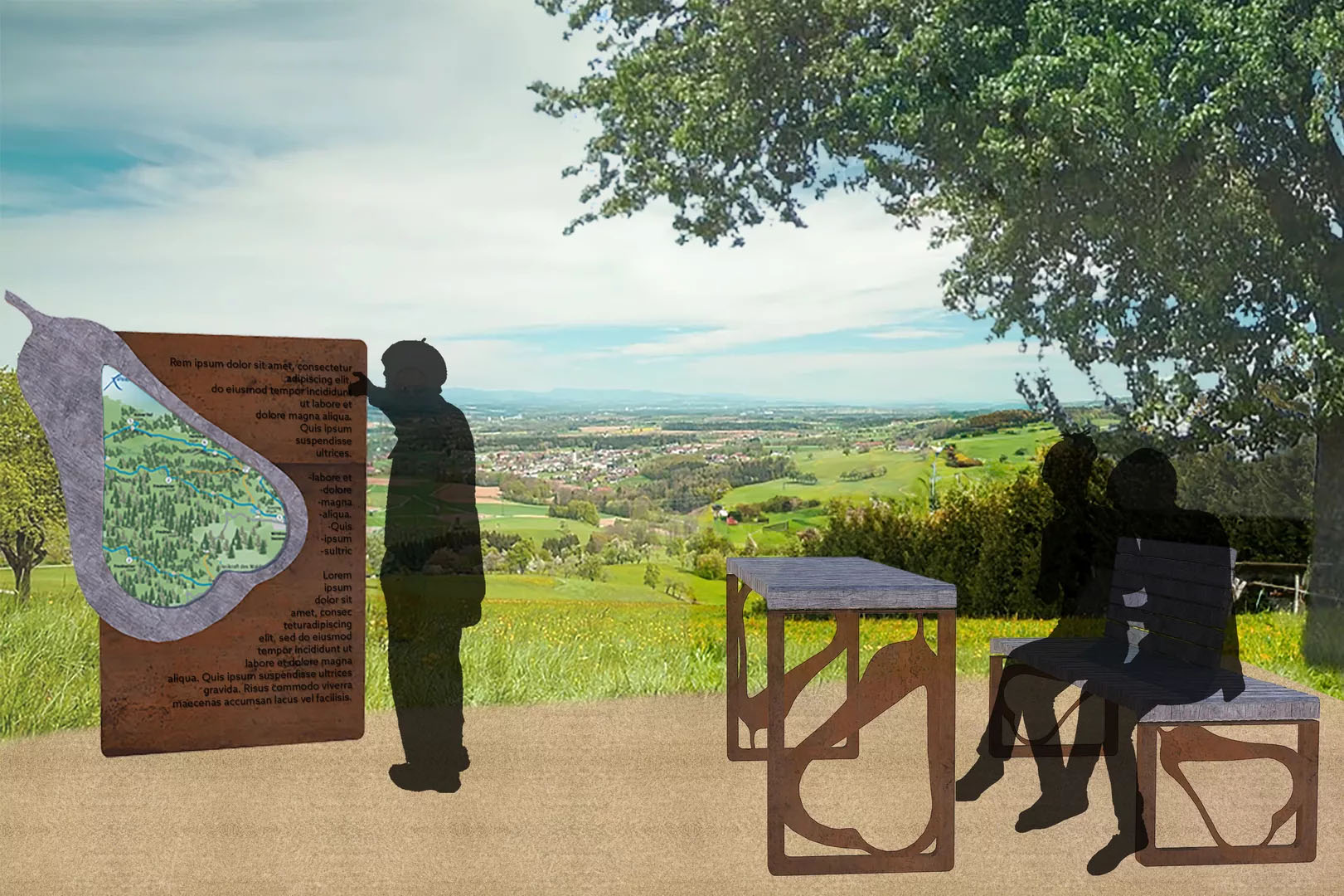 Die einzigartigen Besonderheiten der Region rund um Naturraum, Geschichte und Persönlichkeiten werden bei Storytellingstationen erläutert. Die von ambientconsult entworfenen "Herz-Birnen" fokussieren atemberaubende Ausblicke mit beeindruckender Vielfalt der Natur- und Kulturlandschaft. Die Identität der Kleinregion wird durch das durchgängige Design von Rast- und Ruheplätzen erlebbar.