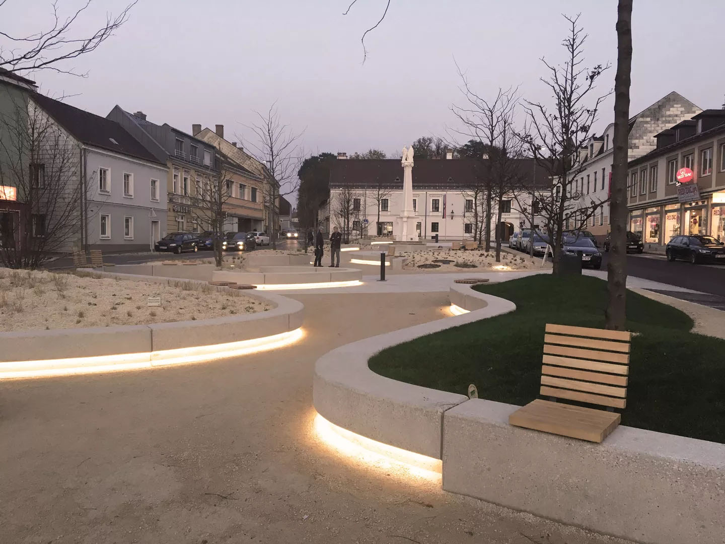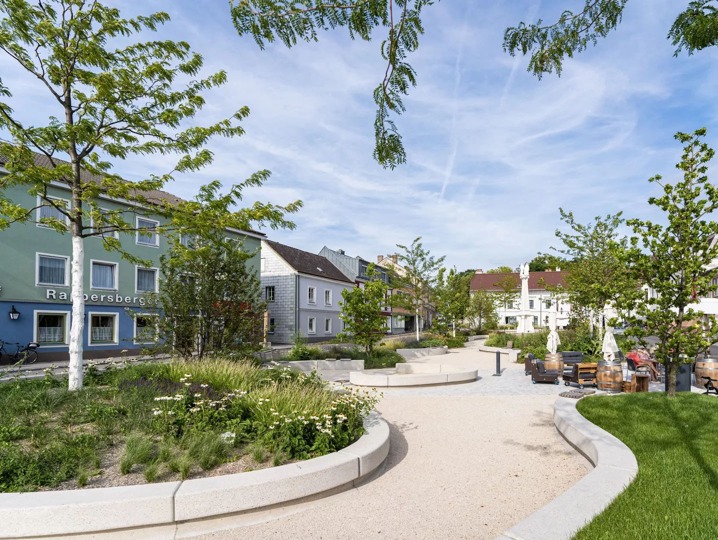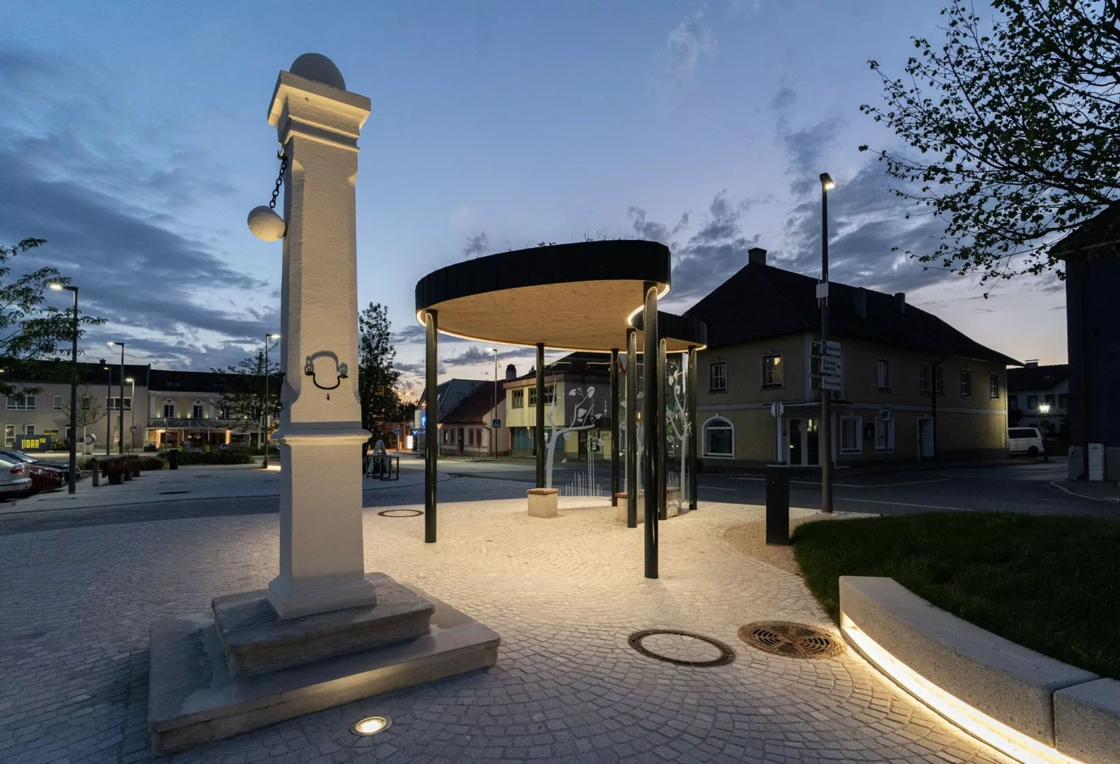 Der Marktplatz stellt sich als Sammelpunkt der Identitätsmerkmale von St. Leonhard am Forst dar. Landschaft und Markt werden am Platz sicht- und erlebbar.