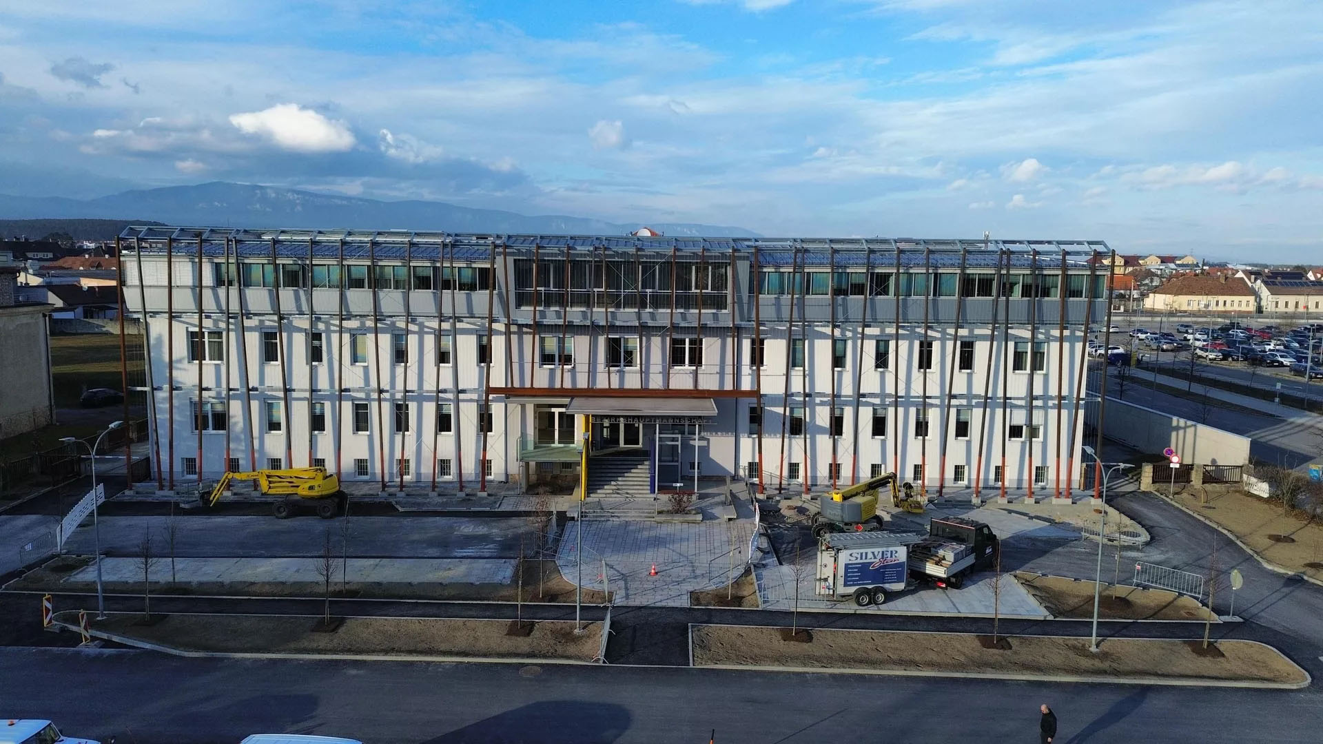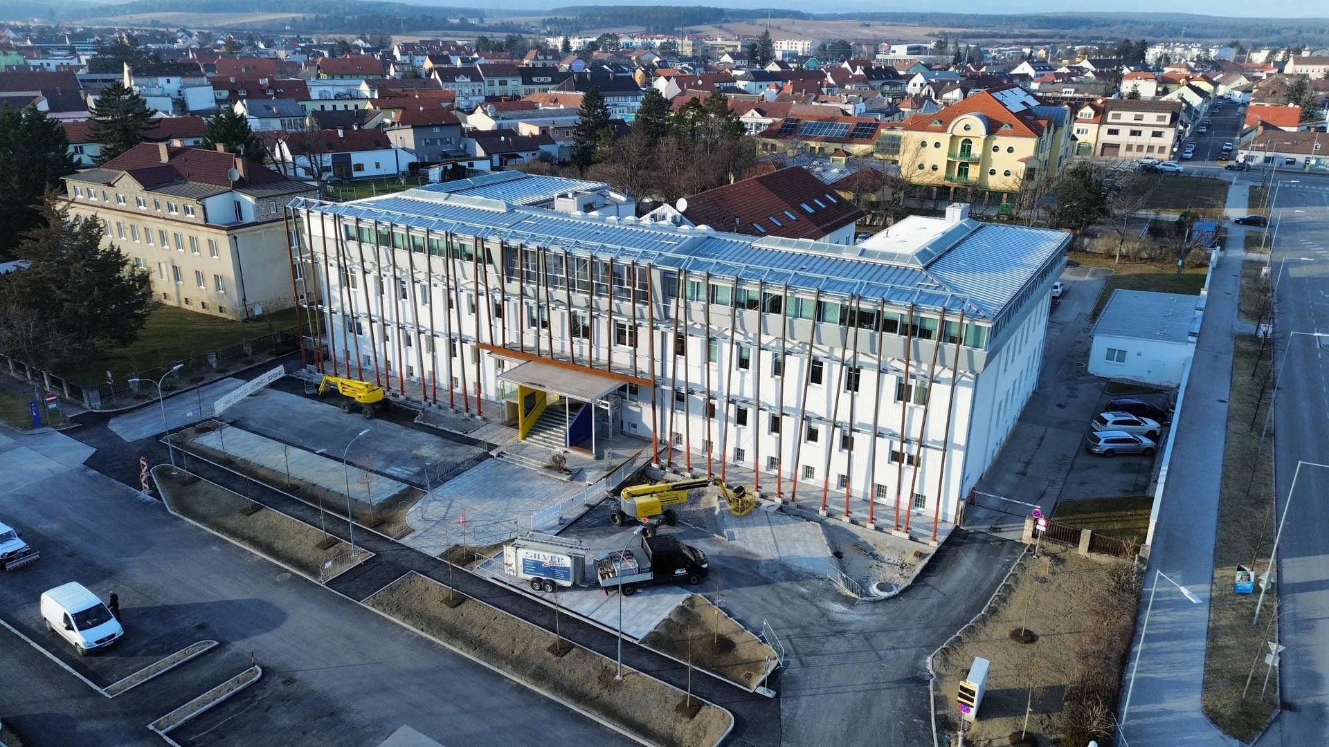 Der Vorplatz der BH Neunkirchen war geprägt von parkenden Autos, Asphalt und einer starken Hitzeentwicklung, die auch die südseitigen Büros der BH Neunkirchen belastet haben.