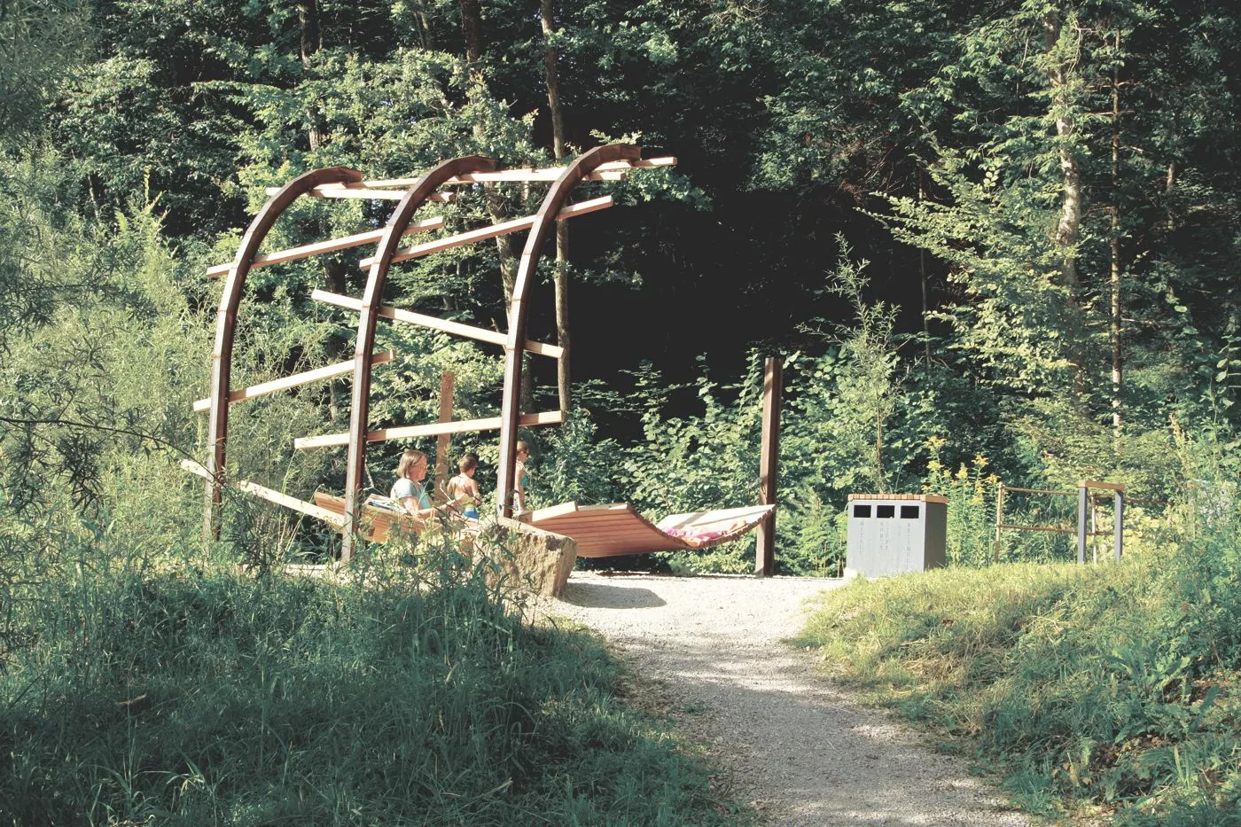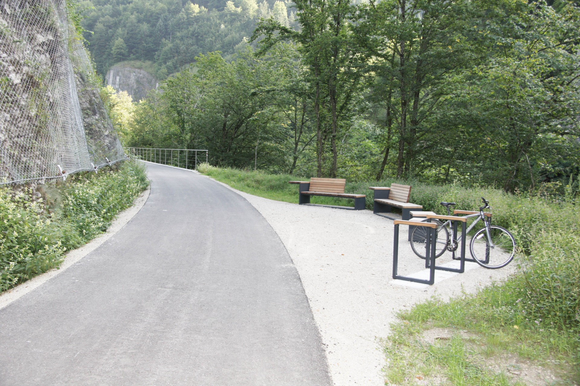 Die Gestaltung des Ybbstalradwegs zwischen Waidhofen an der Ybbs und Lunz am See macht die regionale Identität entlang der ehemaligen Bahntrasse unmittelbar erlebbar. Das entwickelte Konzept setzt auf eine authentische Materialsprache aus Holz und Metall, die tief in der Geschichte des Tales verwurzelt ist. Adaptierte Rottenunterkünfte dienen heute als Wetterstadel, während recycelte Bahnschienen zu schattenspendenden Pergolen transformiert wurden.